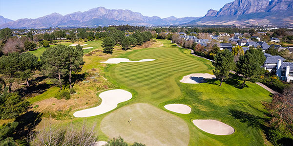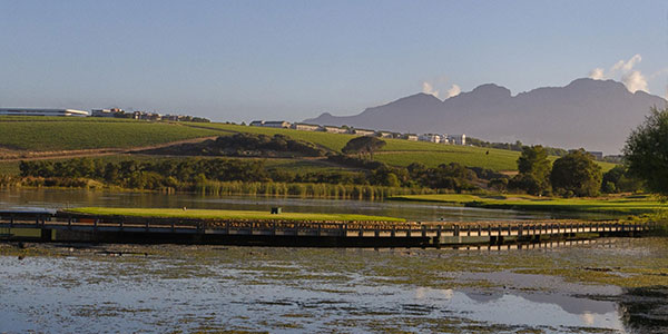 De Zalze Golf Course offers  a varying range of holes, tranquil scenery, and superb conditioning. The fairways are generously wide, yet the approaches to greens require precise shot-making. Water hazards, an array of risk-and-reward par 5s, and on 17th, there is a small ravine formed by the river in front of the green. Table Mountain stands as a distant, yet imposing backdrop.